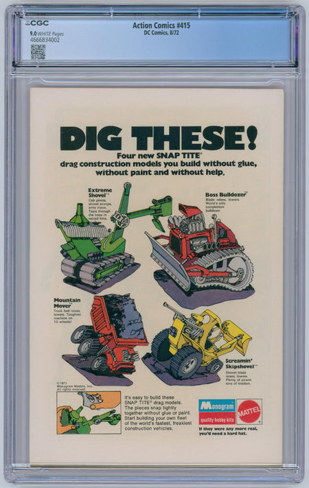 Action Comics 0415 - Mark Jewellers insert + WHITE pages - 1972 CGC 9.0